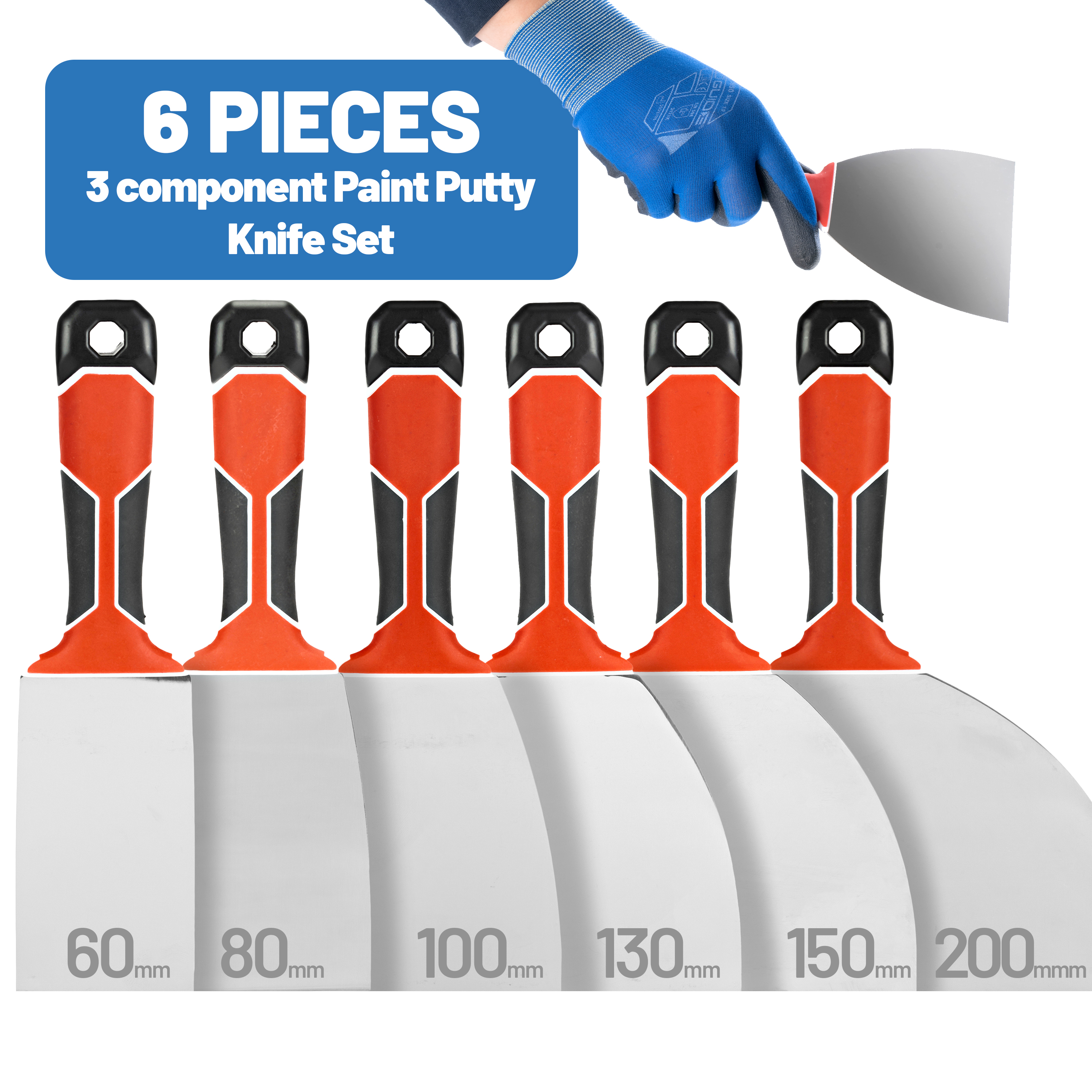 6 Piece 3 Component Paint Putty Knife Set Components