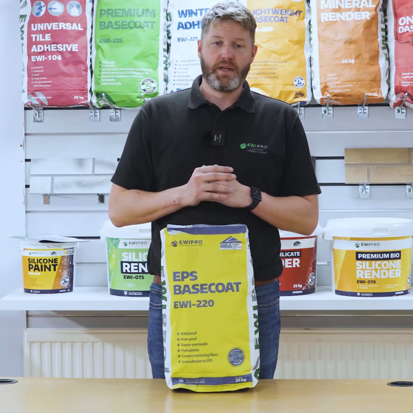EWI Pro's EWI-220 EPS Basecoat Adhesive (25kg) is our most popular EPS compatible adhesive. It is a dual-purpose product, used to fix EPS insulation to substrates and also as part of the basecoat reinforcement layer. Once dry, the adhesive provides a strong, flexible and waterproof layer. Being dual-purpose, this product allows installers to have only one type of bag on-site, meaning less wastage. The preparation process for EWI-220 is the same for both basecoat reinforcement layers and for fixing EPS insulation boards to the substrate. The following substrates are suitable for the application of EPS insulation boards using EWI-220: ordinary concrete, walls of ceramic and silicate elements, concrete, light-aggregate and cellular concrete with an untreated surface, plastered, painted or textured.