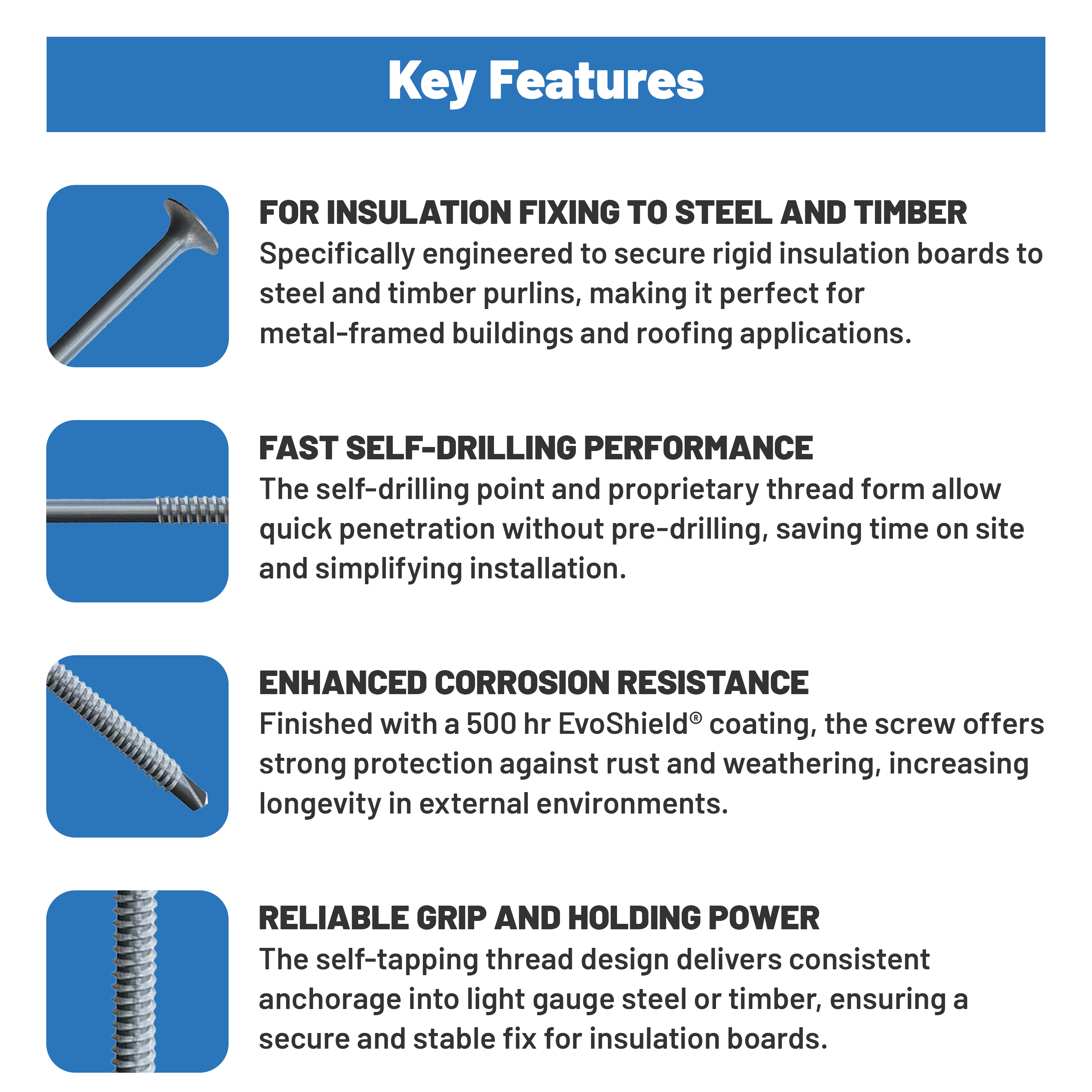 EVOLUTION - Long Length Self Drilling Insulation Screws - 60mm (Box of 200)