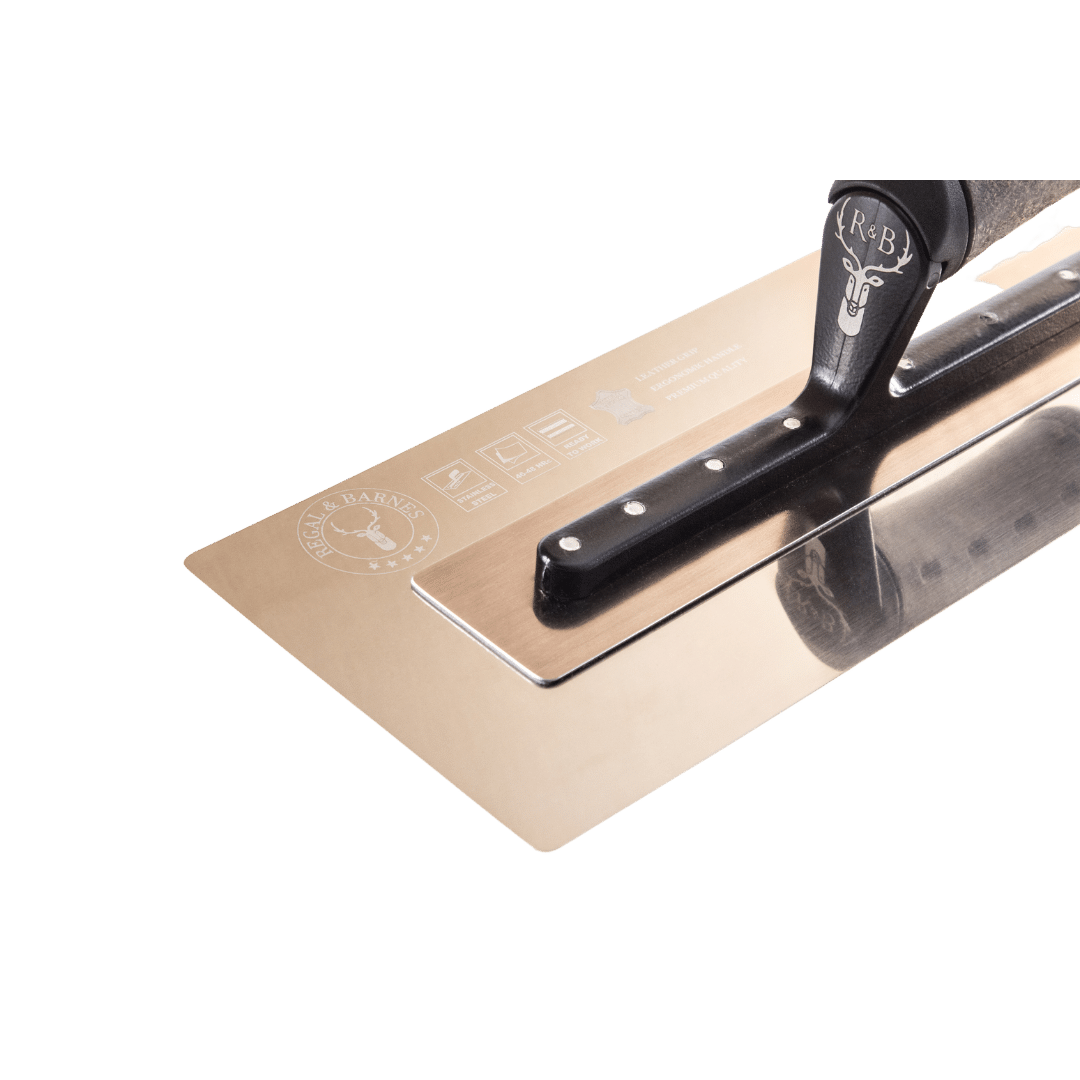 Regal and Barnes Specialist Edition tools come with a luxurious leather non-slip handle grip. The leather finish creates a soft and comfortable experience, reducing friction between the hand and tool, which can lead to discomfort when plastering for long durations. Our Specialist Edition tools range is our premium option, comprising the highest quality leather finish designed to provide our clients with highly durable, long-lasting tools.Â