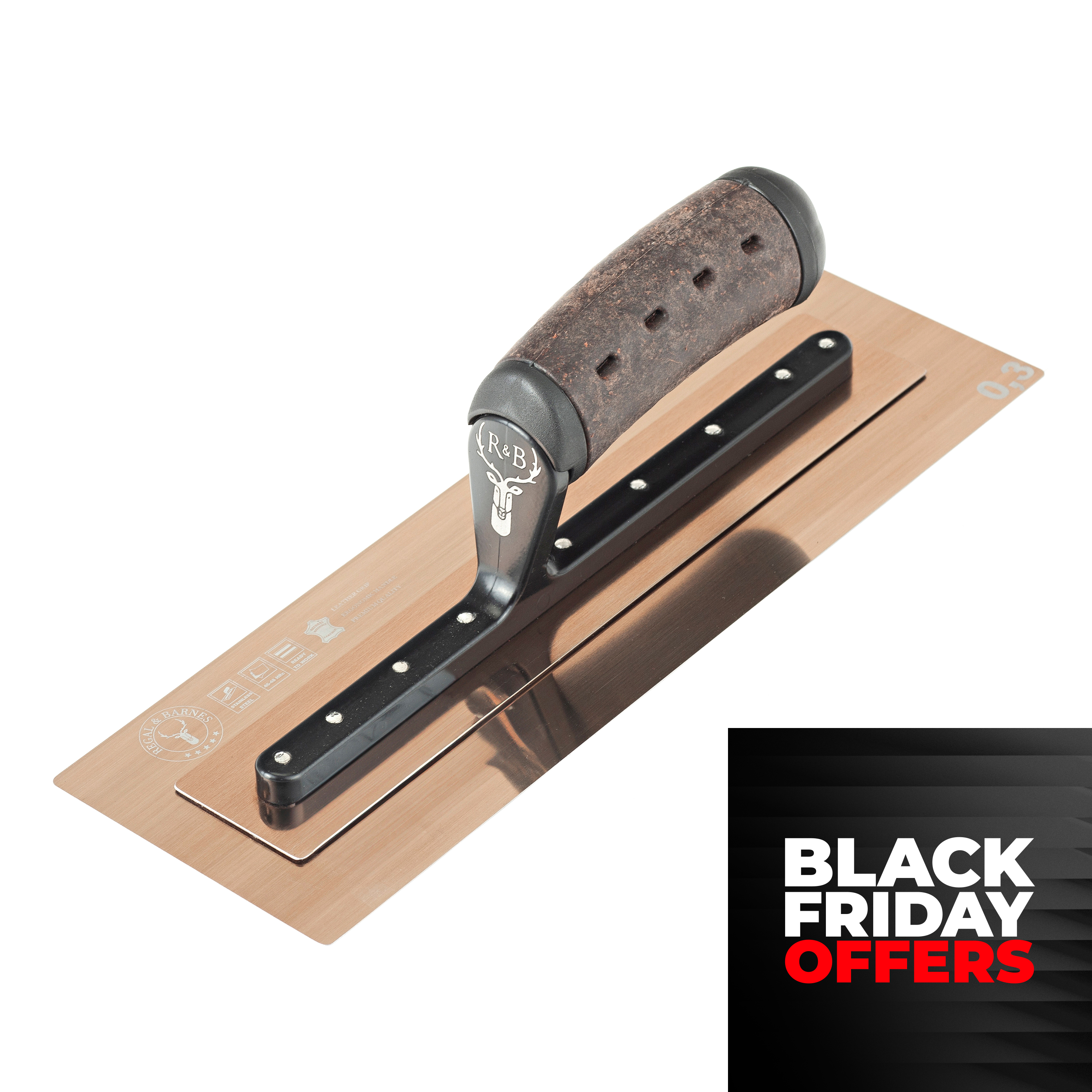 Gold Hardened Stainless Steel Trowel - 12"/305mm (Cork Handle)